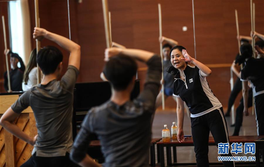 7月9日,遼寧芭蕾舞團(tuán)團(tuán)長(zhǎng)曲滋嬌在指導(dǎo)演員進(jìn)行芭蕾舞劇《花木蘭》的排練。新華社記者 潘昱龍 攝