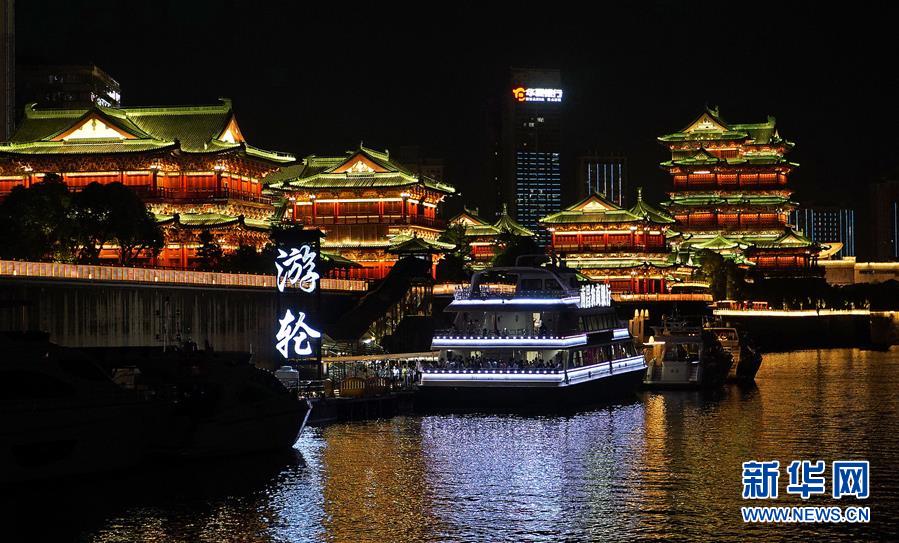 在江西南昌,游客在游輪上欣賞夜景(8月6日攝)。  新華社記者 萬象 攝