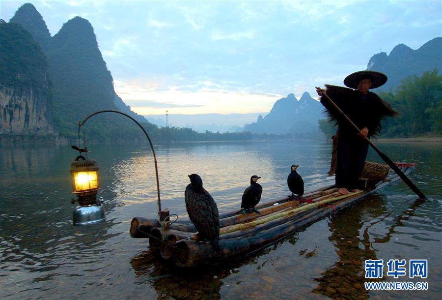 新華社照片,桂林(廣西),2018年10月22日 青山綠水里的生態文明路——“最美山水城市”桂林發展之變 一名老人帶著魚鷹在廣西桂林市陽朔縣興坪鎮漓江上打漁(2006年5月27日攝)。 江作青羅帶,山如碧玉簪。1100多年前,唐朝詩人韓愈寫盡桂林山水之美。千百年來,桂林的青山綠水成為歷朝歷代文人騷客筆下的“人間仙境”。 保護好桂林山水,既是對祖國大好河山負責,更是對歷史負責。近年來,尤其是黨的十八大以來,桂林嚴守生態底線,以前所未有的力度截污治河,保護漓江最美山水,推動城鄉統籌協調發展,不斷擴大對外開放合作力度,努力在青山綠水里走出一條生態文明路。 新華社記者 周華 攝