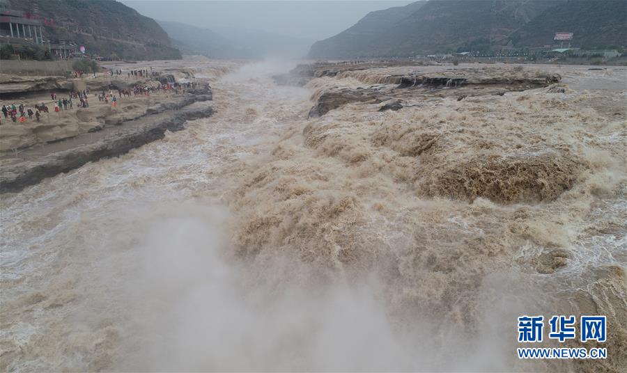 這是10月17日無人機拍攝的黃河壺口瀑布。新華社記者邵瑞攝