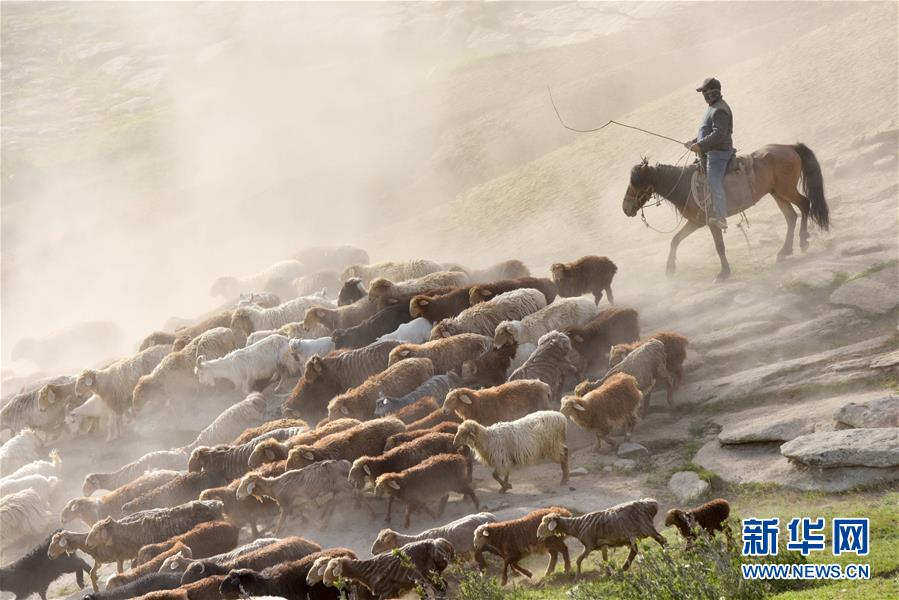 6月6日,新疆阿勒泰地區(qū)福海縣牧民趕著牲畜向夏季牧場遷徙新華社記者 丁磊 攝