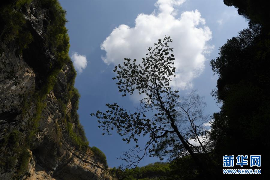 這是在地洞河天坑底部拍攝的植物。位于陜西省漢中市寧強縣的地洞河天坑,是禪家巖天坑群中規模最大的一處天坑,坑內分布有石鐘乳、石筍,具有極高的地質研究價值。新華社 張博文 攝