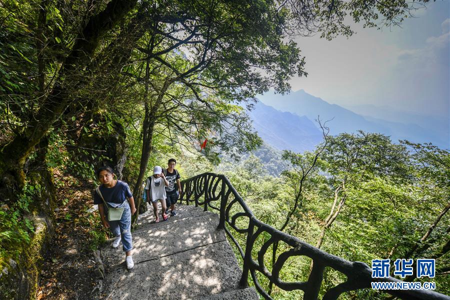 游客在重慶金佛山風景區內的絕壁棧道上游覽體驗(8月20日攝)。 新華社記者 劉潺 攝
