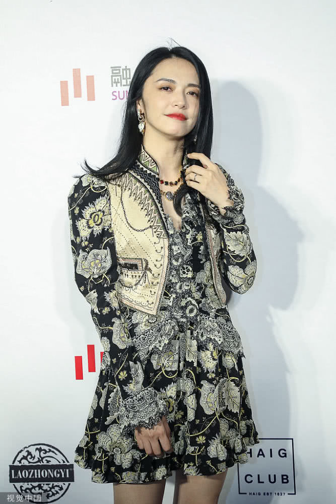 女演員姚晨亮相,穿黑白泡泡袖印花連衣裙,戴項鏈優雅迷人