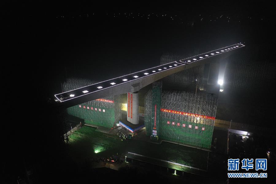 這是8月27日凌晨無人機拍攝的轉體完成的橋梁。 新華社記者 邢廣利 攝
