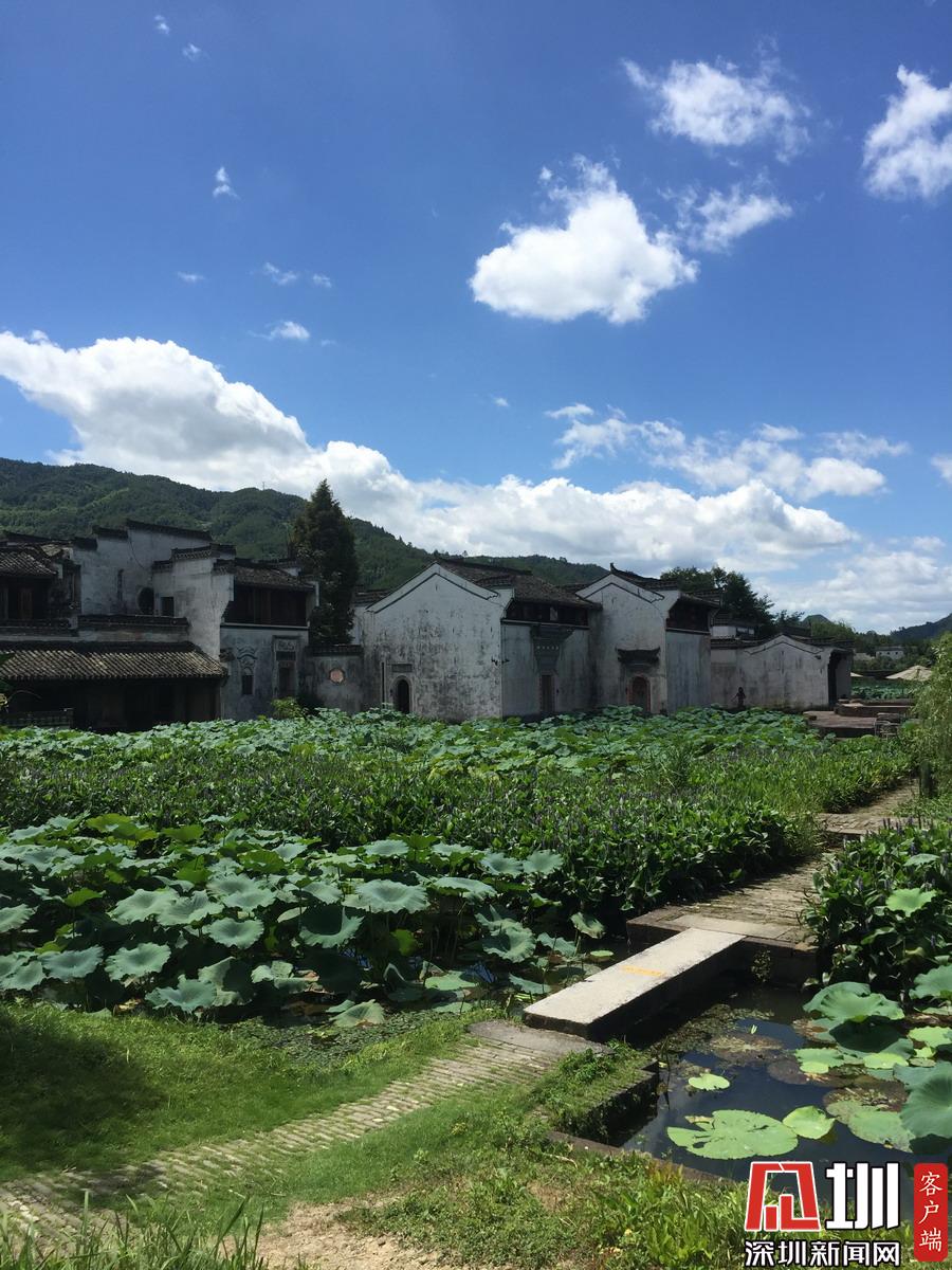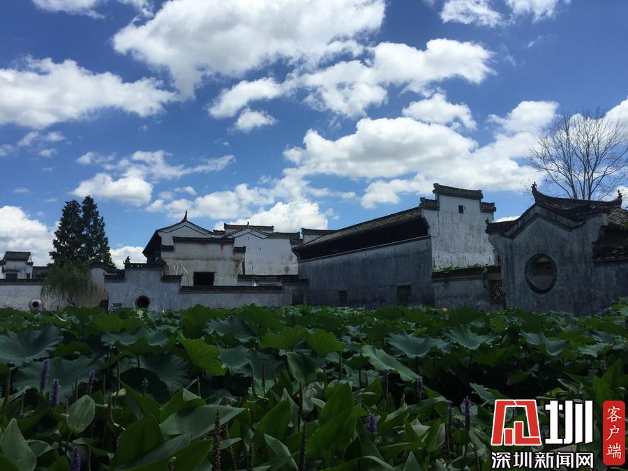 這是呈坎村內的荷塘和古民居(8月28日攝)。新華社記者劉軍喜攝
