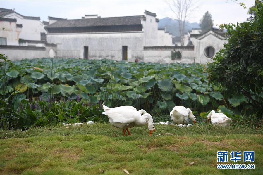 這是呈坎村內的荷塘(8月28日攝)。新華社記者劉軍喜攝
