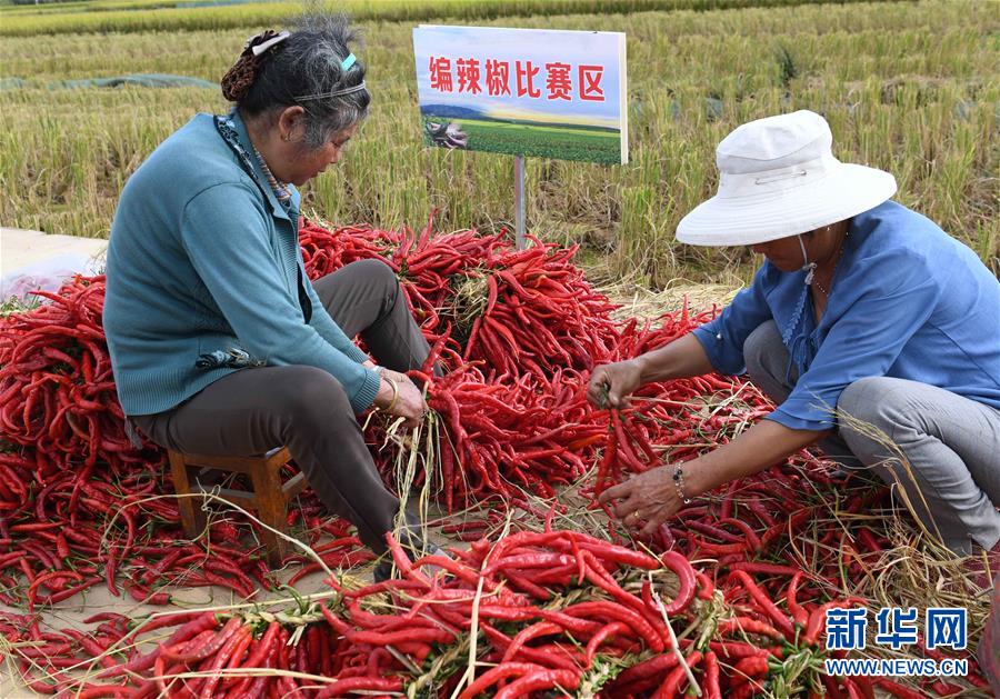 9月15日,云南尋甸回族彝族自治縣七星鎮魯古村的農婦在參與編辣椒比賽。 新華社記者 楊宗友 攝
