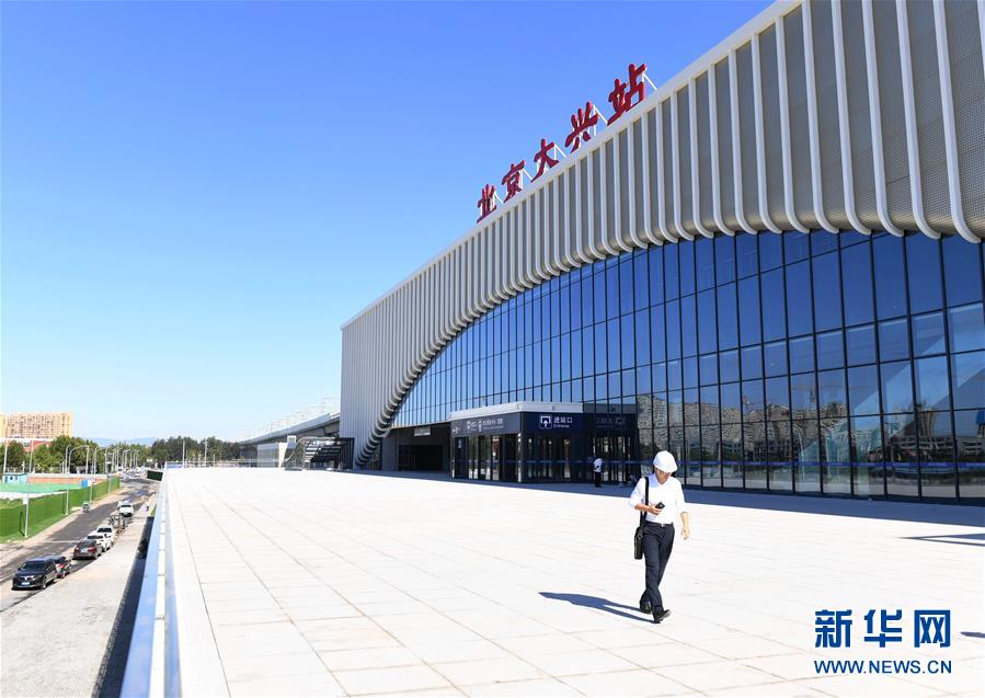9月18日拍攝的京雄城際北京大興站。當日,京雄城際北京大興站通過設計驗收。北京大興站未來是北京大興機場與北京城區接駁的重要節點,同時也是北京與雄安新區的重要橋梁。新華社記者張晨霖攝