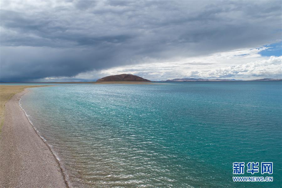 西藏納木錯風光(7月5日無人機拍攝)。新華社記者李鑫攝