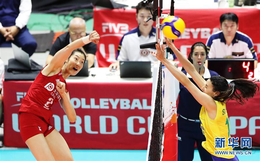 女排世界杯:中國隊3比2戰勝巴西隊