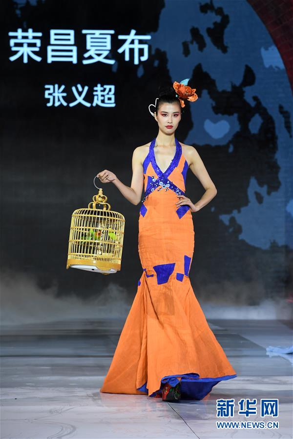 9月25日,模特在榮昌夏布·張義超非遺時尚大秀上展示時裝設計師張義超的時裝作品。