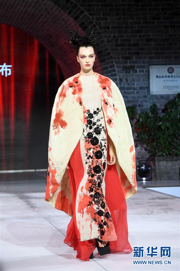 9月25日,模特在榮昌夏布·張義超非遺時尚大秀上展示時裝設計師張義超的時裝作品。 新華社記者 唐奕 攝