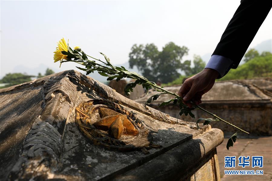 9月30日,在越南北部河南省,人們用鮮花祭奠中國援越烈士。 中國駐越南大使館館員、中國援越老戰士及其親屬、在越中資機構和留學生代表等30日前往位于越南河南省的金榜烈士陵園,祭奠長眠于此的14名中國援越烈士。越中友協副主席阮榮光等越方代表也參加了祭掃活動。 新華社記者 王迪 攝