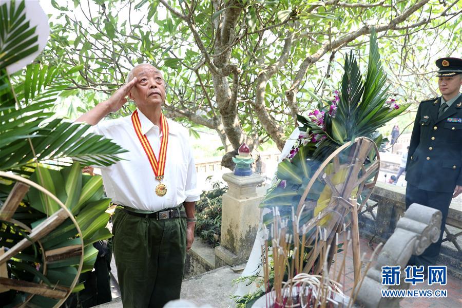 9月30日,在越南北部河南省,一名中國援越老兵向中國烈士紀念碑敬禮。 中國駐越南大使館館員、中國援越老戰士及其親屬、在越中資機構和留學生代表等30日前往位于越南河南省的金榜烈士陵園,祭奠長眠于此的14名中國援越烈士。越中友協副主席阮榮光等越方代表也參加了祭掃活動。 新華社記者 王迪 攝