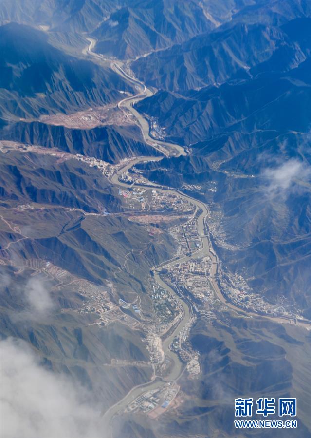 這是空中拍攝的高原景色(10月3日攝)。 國慶期間,來自國內外的游客乘機前往西藏觀光旅游,在飛往拉薩的飛機上鳥瞰高原,欣賞高原獨特的美景。 新華社記者 普布扎西 攝