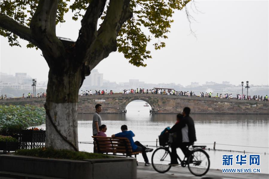 10月7日,杭州西湖風景區的斷橋上游人絡繹不絕。