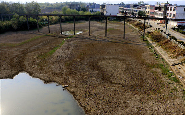 2019年10月4日,江西彭澤縣黃嶺鄉芳湖村,池塘干枯見底。