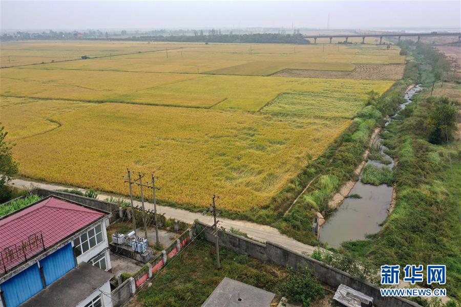 在江西省南昌市新建區,贛江水已被引至一農田溝渠,保障當地農業用水(10月11日無人機拍攝)。 7月下旬至10月初,江西省平均降雨量為96毫米,比多年均值偏少約七成,排歷史同期倒數第一位,持續的少雨天氣導致江西省主要江河水位持續走低,多地出現不同程度的旱情。 針對當前旱情,江西各地紛紛采取措施,積極組織群眾開展抗旱自救,力爭將旱情帶來的損失降到最低。 新華社記者 彭昭之 攝