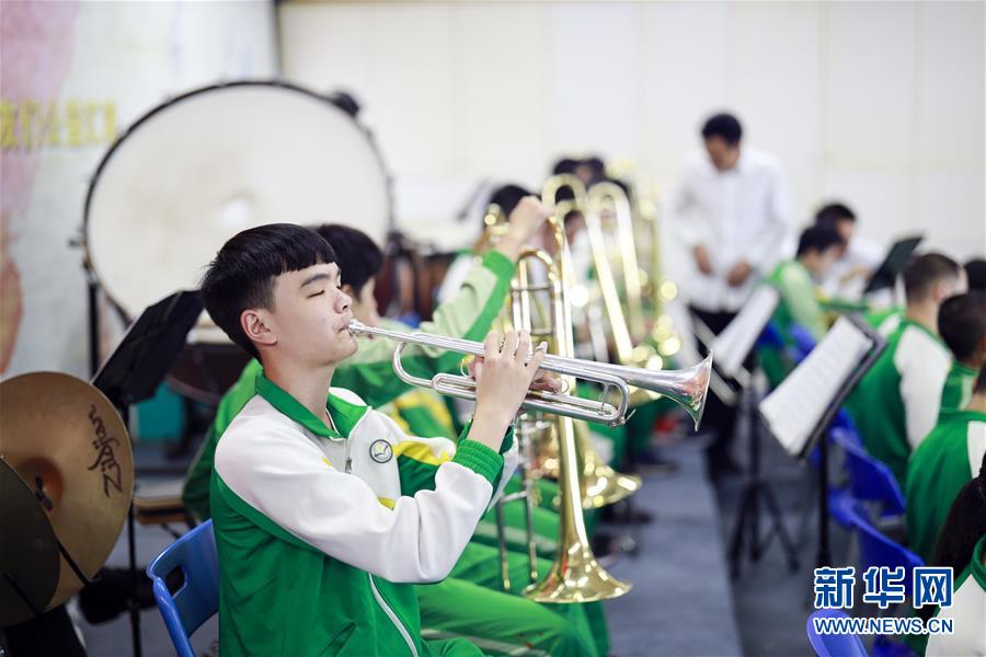 重慶市特殊教育中心排練廳,學生在排練開始前練習小號(10月9日攝)。 新華社記者 劉潺 攝