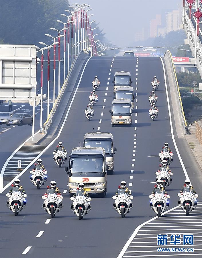 9月29日上午,國家勛章和國家榮譽稱號獲得者乘坐禮賓車從住地出發,在國賓護衛隊的護衛下,前往人民大會堂參加中華人民共和國國家勛章和國家榮譽稱號頒授儀式。 新華社記者 燕雁 攝