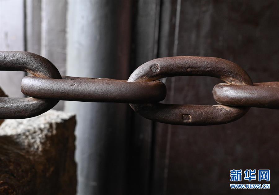 瀘定橋的鎖鏈總共有12164個鐵環相扣,現今仍可在鐵環上看到一些獨特的標記(6月27日攝)。 新華社記者 江宏景 攝