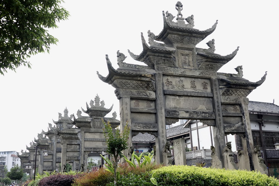 隆昌現存17座石牌坊,其中主要的13座呈念珠狀坐北向南一字排列,位于隆昌城南北兩端的古驛道中央,其余4座散布于鄉間。李仁奇攝
