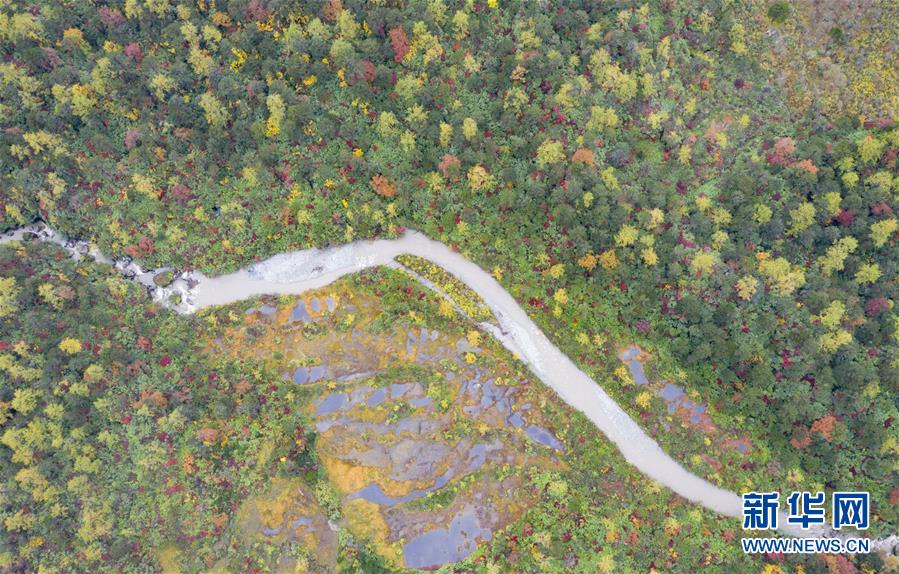 派墨公路沿線秋色(10月24日無人機拍攝)。 正在修建的派墨農村公路起點位于西藏林芝市米林縣派鎮,將通往墨脫縣解放大橋,公路沿線的深秋景色優美如畫。 新華社記者 普布扎西攝