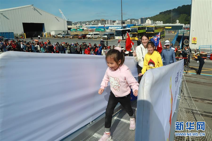 10月26日,在新西蘭首都惠靈頓,中國海軍訓練艦戚繼光艦抵達港口。新華社發(張浩宇攝)