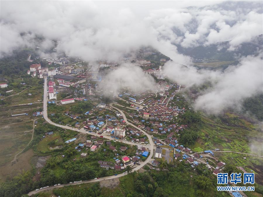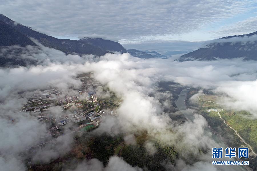 這是云海籠罩的西藏墨脫縣(4月9日無人機拍攝)。新華社記者李鑫攝