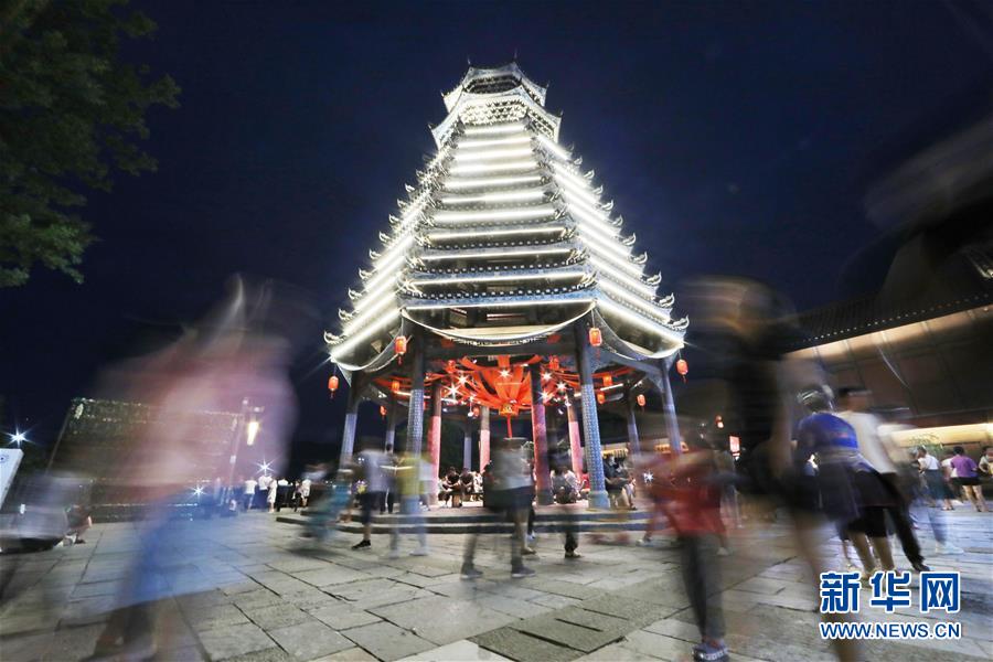 7月2日,游客在丹寨萬達小鎮游覽。新華社記者歐東衢攝