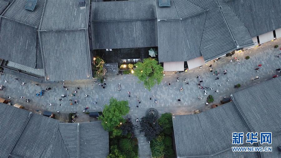 7月2日,游客在丹寨萬達小鎮游覽(無人機拍攝)。新華社記者歐東衢攝