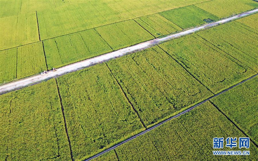 河南省信陽市光山縣文殊鄉東岳村的稻田(9月4日無人機拍攝)。新華社記者馮大鵬攝