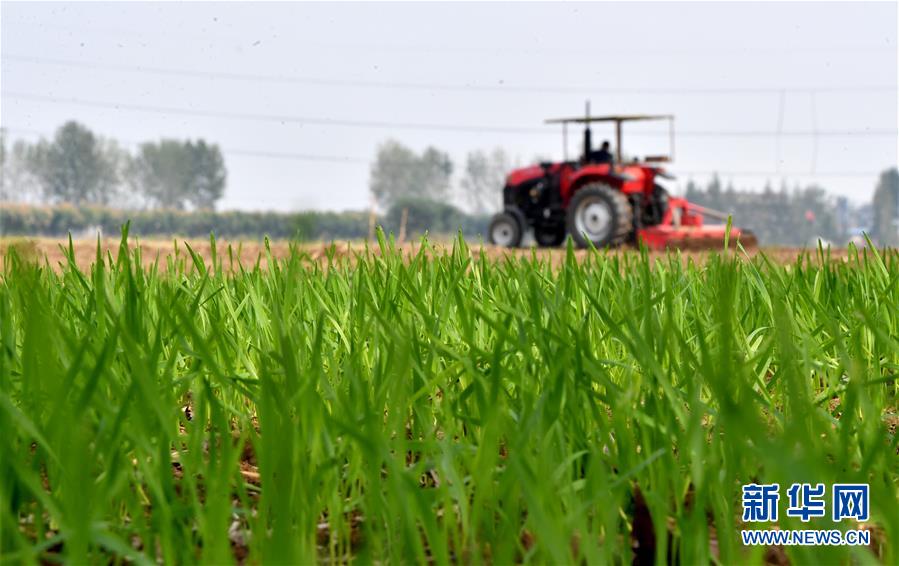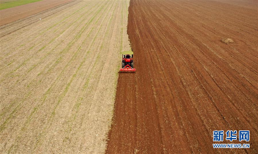 河南省寶豐縣趙莊鎮周營村農民駕駛機械在農田里犁地(10月17日攝)。新華社記者李嘉南攝