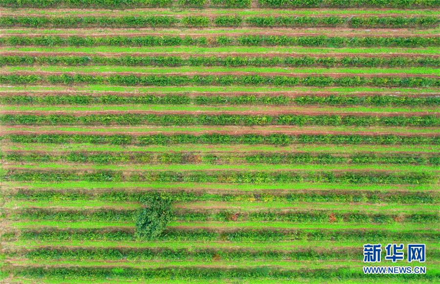 河南省洛寧縣馬店鎮關廟村金珠沙梨種植基地(10月9日無人機拍攝)。新華社記者李嘉南攝