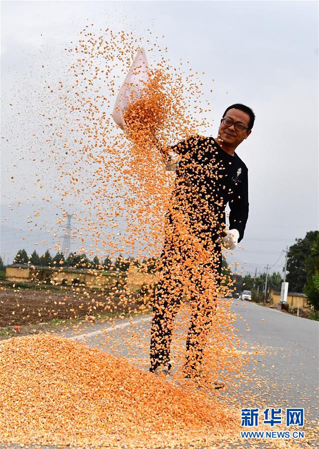 產糧大省的別樣秋色在河南省鞏義市西村鎮滹沱村,村民在晾曬玉米(10月24日攝)。新華社記者馮大鵬攝