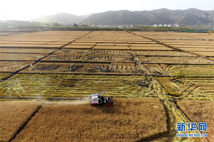金秋時節,山西省太原市晉源區2000多畝水稻迎來收獲季,田間地頭稻浪滾滾,一派豐收景象。