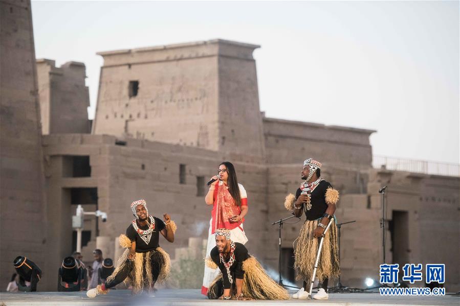 10月27日,演員在位于埃及阿斯旺的菲萊神廟表演。 第四屆中非藝術節27日在埃及南部歷史文化名城阿斯旺開幕。來自中國、埃及、尼日利亞、烏干達、突尼斯等約30個國家的藝術團在開幕式上奉獻了各具特色的表演,吸引數百名當地觀眾前往欣賞。 新華社記者 鄔惠我 攝