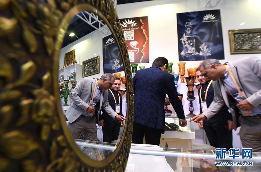 11月5日,伊朗參展商在第二屆進博會服務貿易展區的展臺前忙碌。新華社記者尹炣攝