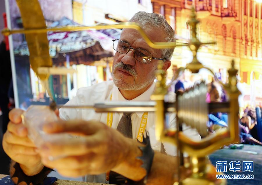 11月5日,捷克玻璃雕刻師伊日·特薩在捷克國家館里展示玻璃雕刻技藝。在上海舉行的第二屆中國國際進口博覽會上,捷克玻璃雕刻師伊日·特薩在捷克國家館里展示高超的技藝。伊日·特薩在創作中運用現代技術——熔接,融入新穎的想法,以其高超的工藝和藝術才華,獲得多項國際獎項。新華社記者普布扎西攝