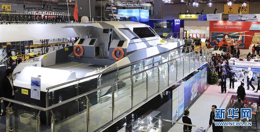 這是在第二屆進博會裝備展區拍攝的法拉帝公司的FSD195高速公務巡邏船(11月8日攝)。這艘全長20米、重約37噸的公務船大量采用碳纖維和鈦金屬等新型材料。新華社記者方喆攝