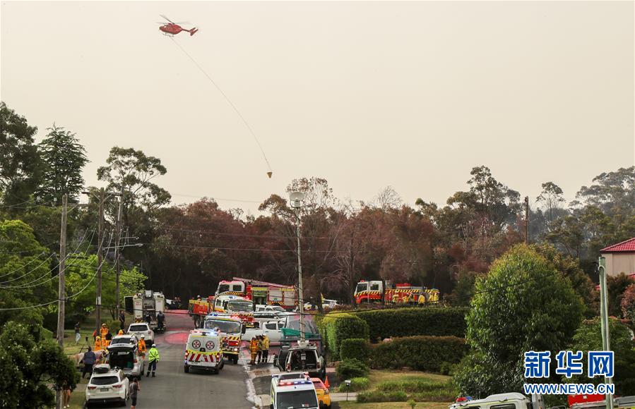 11月12日,在澳大利亞悉尼附近的南塔勒馬拉,一架消防直升機參與滅火。近日,澳大利亞東部林火繼續(xù)肆虐,大悉尼地區(qū)面臨“災(zāi)難級”林火威脅。悉尼所在的新南威爾士州州長貝雷吉克利安11日宣布該州進(jìn)入為期7天的緊急狀態(tài)。12日,最近的起火點已逼近悉尼城區(qū),林火造成城市上空被大量煙塵籠罩。新華社記者白雪飛攝