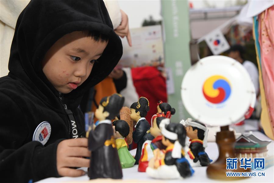 11月17日,一名小觀眾在國際文化節韓國文化展示區參觀。新華社記者 張端 攝