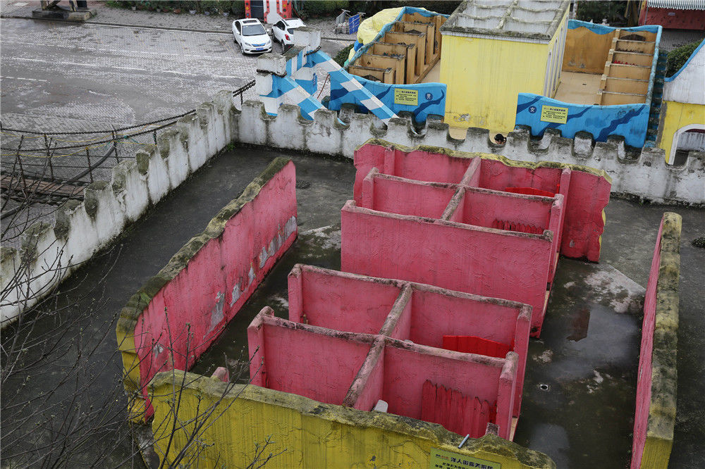 2017年3月15日,重慶,一景區在一處山坡設置了全長850米的童話城堡風格廁所,數百間裝修風格各異的男女廁所令人稱奇,景區也打出了“最牛的廁所”標語。值得一提的是,這些廁所中不少都是全露天的,從山坡高地向下看,廁所內幾乎一覽無余。左冬辰/視覺中國