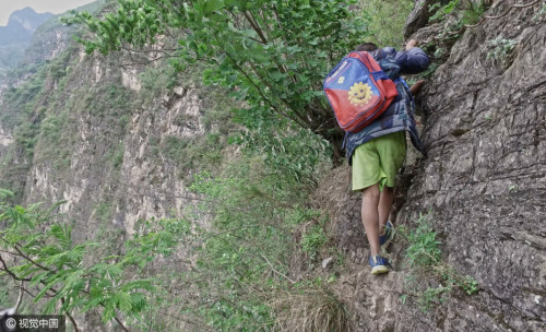 實拍懸崖村的“雙十一” 背著快遞包裹上天梯