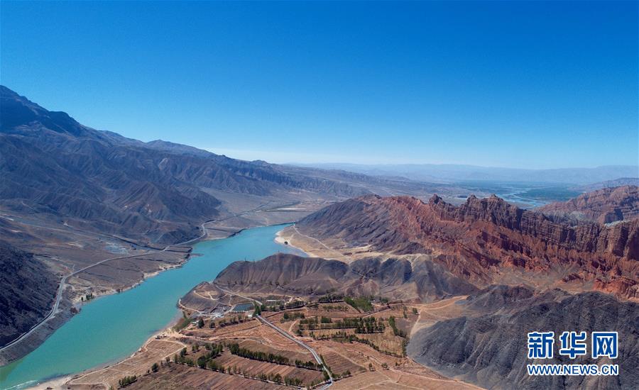 這是位于貴德縣尕讓鄉松巴村附近的丹霞地貌一角(4月16日無人機拍攝)。新華社記者張宏祥攝