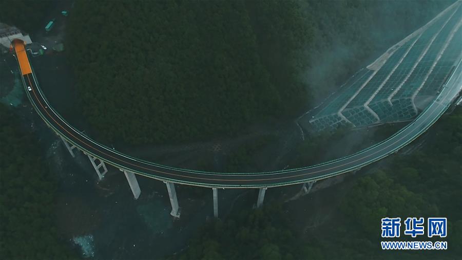 6月11日,一輛汽車在青海省扎隆溝至碾伯鎮公路上行駛(無人機拍攝)。新華社記者張宏祥攝