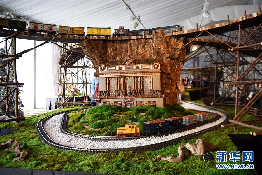 11月26日,在美國紐約植物園節日小火車展上,模型小火車駛過紐約中央車站微縮模型。新華社記者韓芳攝