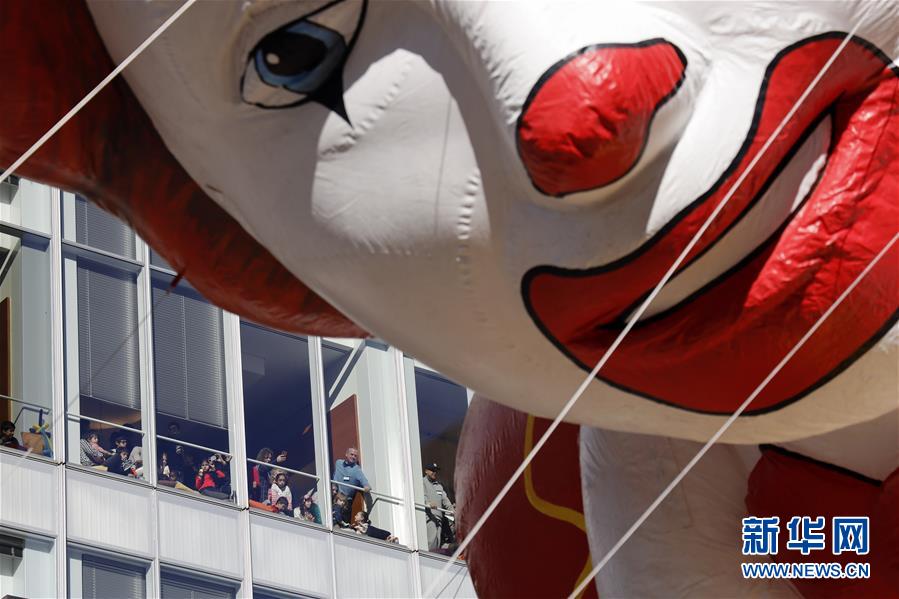 11月28日,在美國紐約,人們在大樓上觀看感恩節大游行。 當日,2019梅西感恩節大游行在紐約舉行,各式各樣的玩偶氣球、花車隊伍在曼哈頓的摩天大樓間穿行,吸引數百萬民眾前來觀看。梅西感恩節大游行始于1924年,是全美規模最大的感恩節游行。 新華社記者 李木子 攝