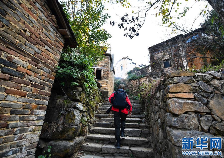曹加祥在篁嶺村采風(fēng)(11月6日攝)。今年44歲的曹加祥是江西省婺源縣的農(nóng)民。他自1993年購(gòu)買第一臺(tái)相機(jī)以來(lái),就愛(ài)上了攝影。2012年,曹加祥辭去工作,成為婺源縣江灣鎮(zhèn)篁嶺村的一名鄉(xiāng)村攝影師。
